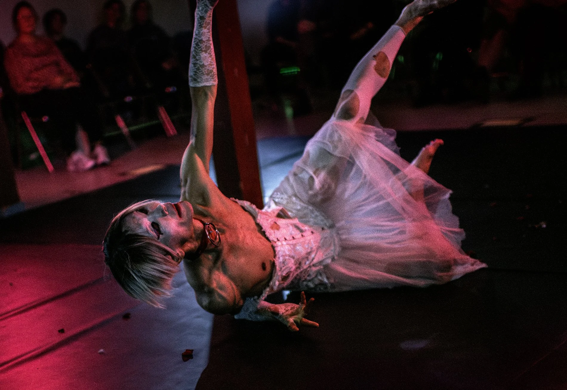The Betty Show is a drunken alternative cabarét & exploration of addictions. This is an experimental show with an old-school variety show form.The show has been written together by Delta Venus. The star of the show is Betty, a partly fictional drama queen. She’s based on our own stories and all the fallen drunken angels of showbiz. Betty does a butoh-dance and goes through many intoxicated memories while electric organs play. The Bettys dance & sing & stumble through the stage wanting more, more, more. Betty’s a drunken stay-at-home mom and a movie-star, and she’s ready to party and burst into a song.